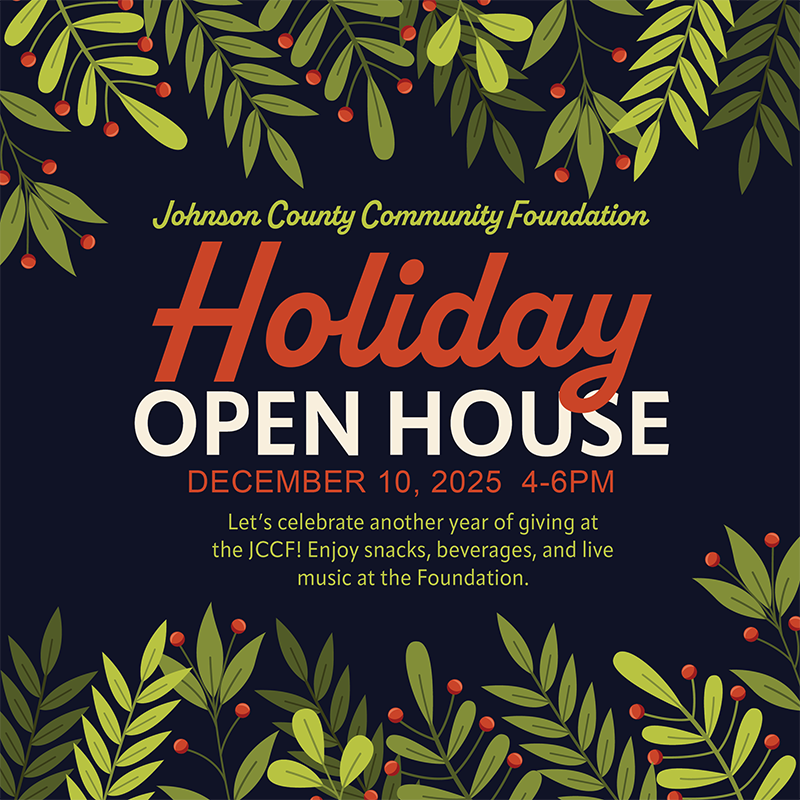 Holiday Open House 2025Date: Wednesday, December 10, 2025Time: 4:00pm - 6:00pmLocation: Johnson County Community Foundation, 398 South Main Street, Franklin, Indiana 46131